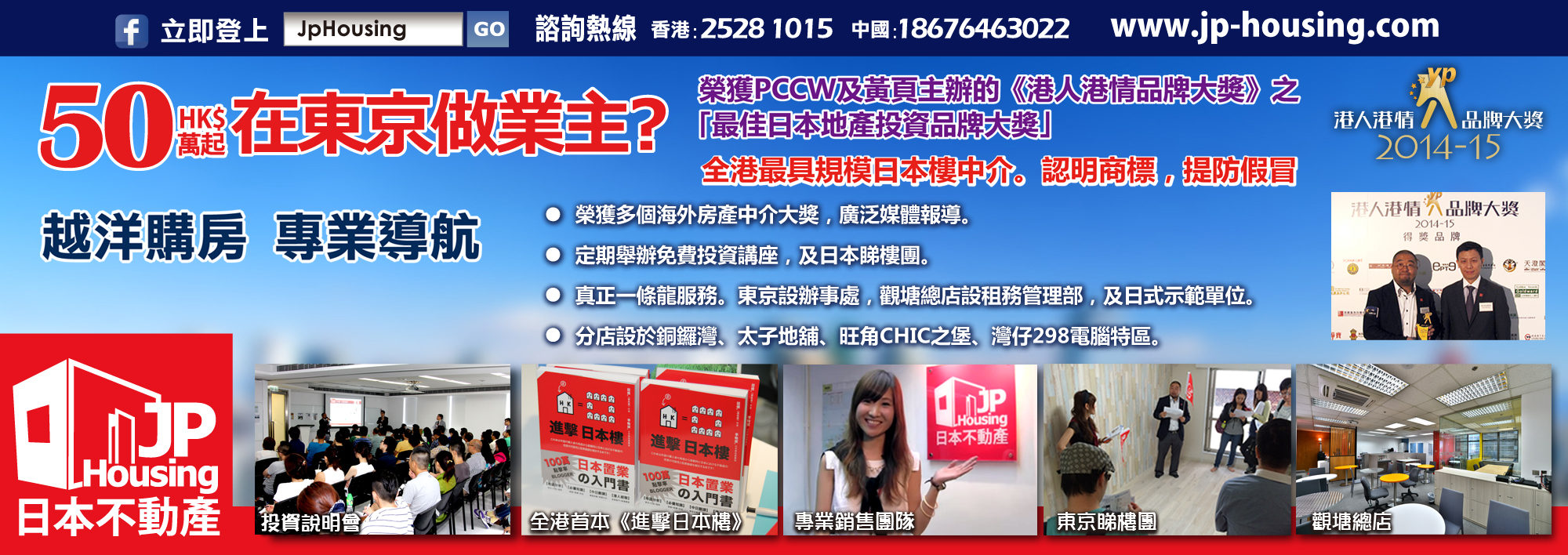 香港人信賴之日本不動產中介權威。 廣受媒體報導,包括日本財經權威《日經新聞》及NHK電視台。 推出全港首本《進擊日本樓》工具書,火速售罄。 東京,香港皆設有辦事處。獨攬日本全國大量筍盤。 買賣,收租,管理一站式專業服務,安心之選。