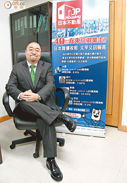 JP Housing董事總經理李翰斌近三年隨發展其日本房產中介生意,對日本市場的熟悉程度日增,亦開始投資日股,他指,「去年三、四月日本政府推行量寬,使日圓逐漸貶值,吸引熱錢流入,所以便在自己較熟悉的建設、房地產及房地產中介等板塊加注投資。」